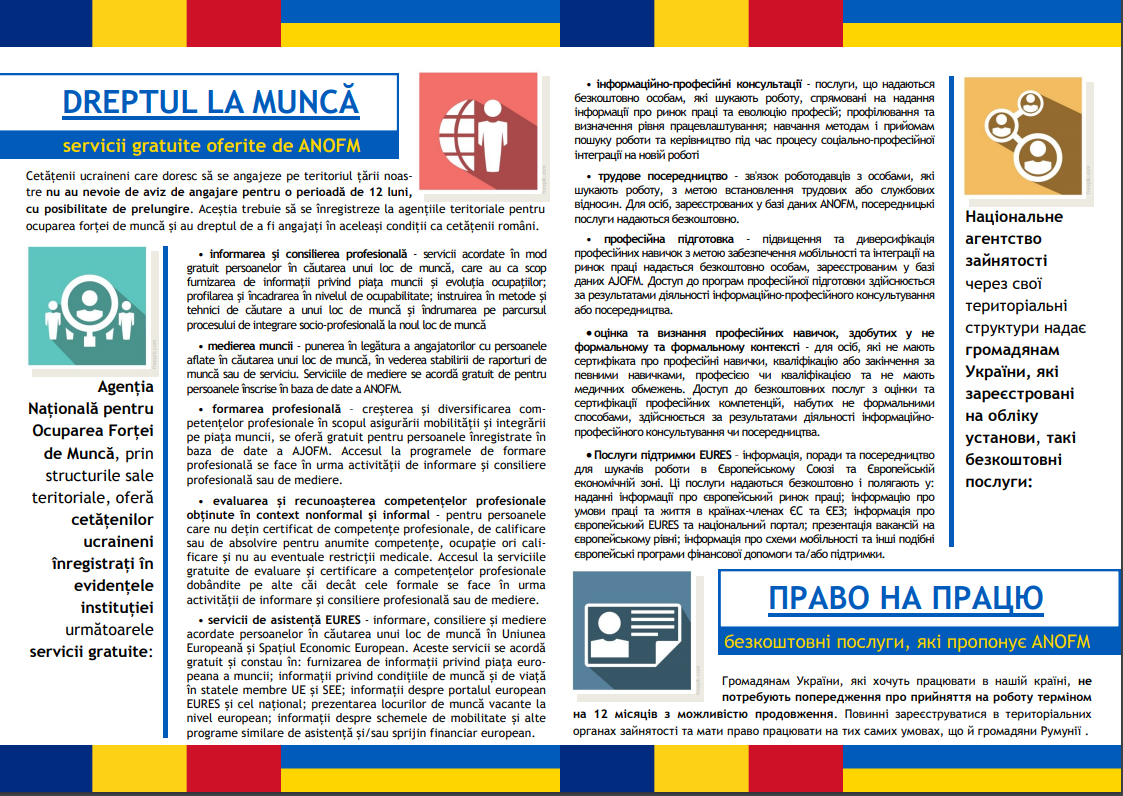 SERVICII GRATUITE OFERITE CETĂȚENILOR UCRAINIENI PENTRU INTEGRAREA PE PIAȚA MUNCII DIN ROMÂNIA